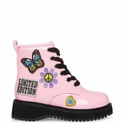 Best Pirce ✨ Steve Madden 👧 Girls’ T-Kudos Glitter Patches Moto 🥾 Boots (Toddler) Pink 🧨